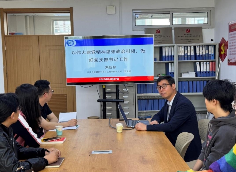 4月27日,beat365在线体育官网第一党支部召开党建工作专题研讨会,邀请湖南省“双带头人”教师党支部书记工作室负责人——湘潭大学材料科学与工程学院教工第二党支部书记刘应都作党建工作经验分享与交流,围绕新时代高校党建与业务深度融合路径展开深入探讨,学院第一党支部党员及学院研究生党员代表参加研讨。