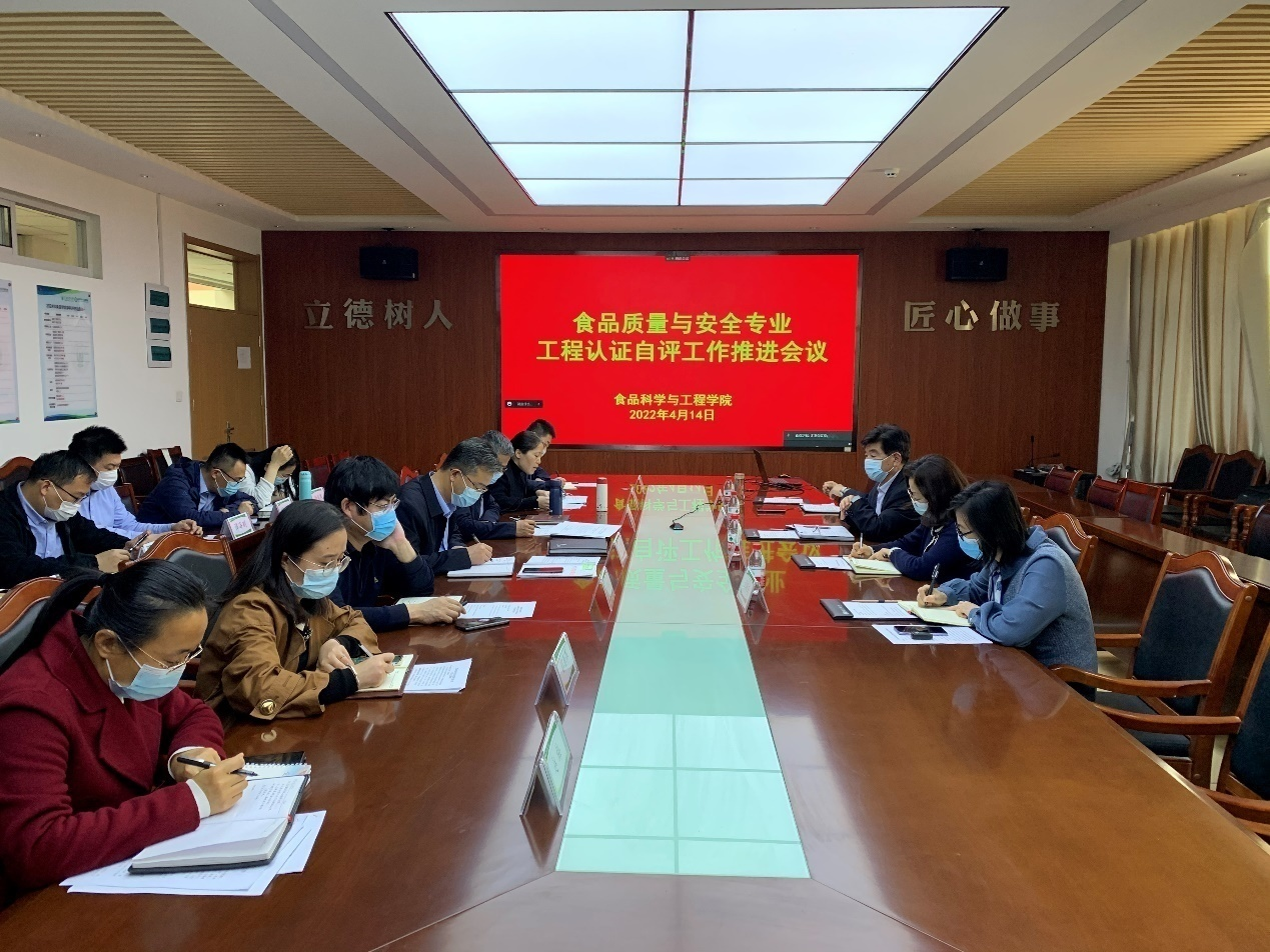 孙庆杰就学院已开展的工程认证工作情况进行了介绍。他表示,下一步学院将在学校领导和相关部门的支持下,积极贯彻“学生中心、产出导向、持续改进”理念,主动对标认证标准要求,进一步明确人才培养目标,优化课程体系,改进教学理念,转变管理模式,健全评价机制,完善条件保障,力争将食品质量与安全专业工程教育认证工作推向新的发展阶段。学院副院长肖军霞就工程教育认证指导思想进行了解读,从学生、培养目标、毕业要求、持续改进、课程体系、师资队伍和支撑条件七个方面进行了具体工作介绍,确保工程教育认证工作有序进行。