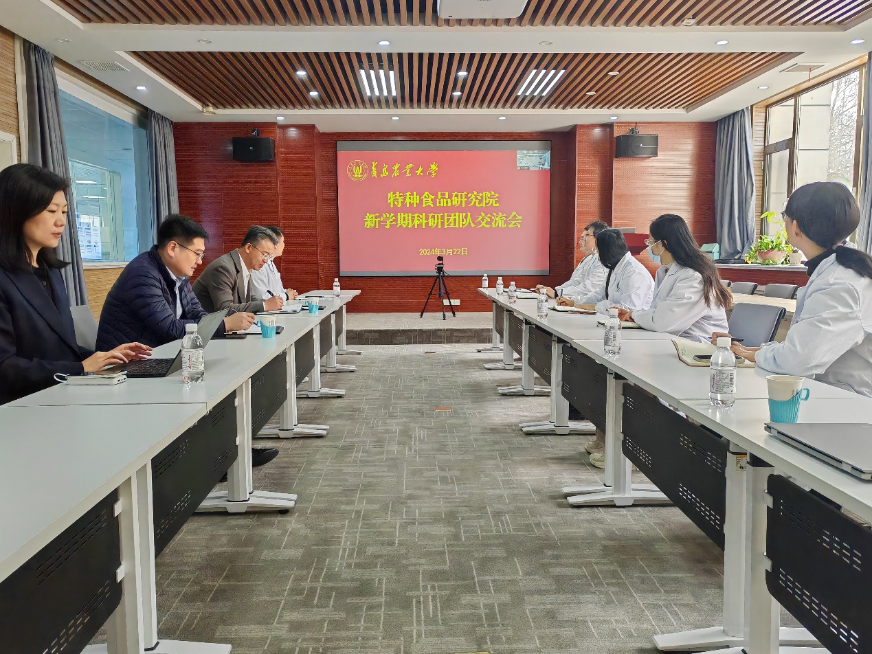 为促进学术交流,凝炼科研方向,增强科研活力,确保新学期科研工作有序开展,3月22日上午,特种食品研究院召开新学期科研团队交流会,beat365在线体育官网党委书记、特种食品研究院副院长车广杰,特种食品研究院副院长高飞参加会议。