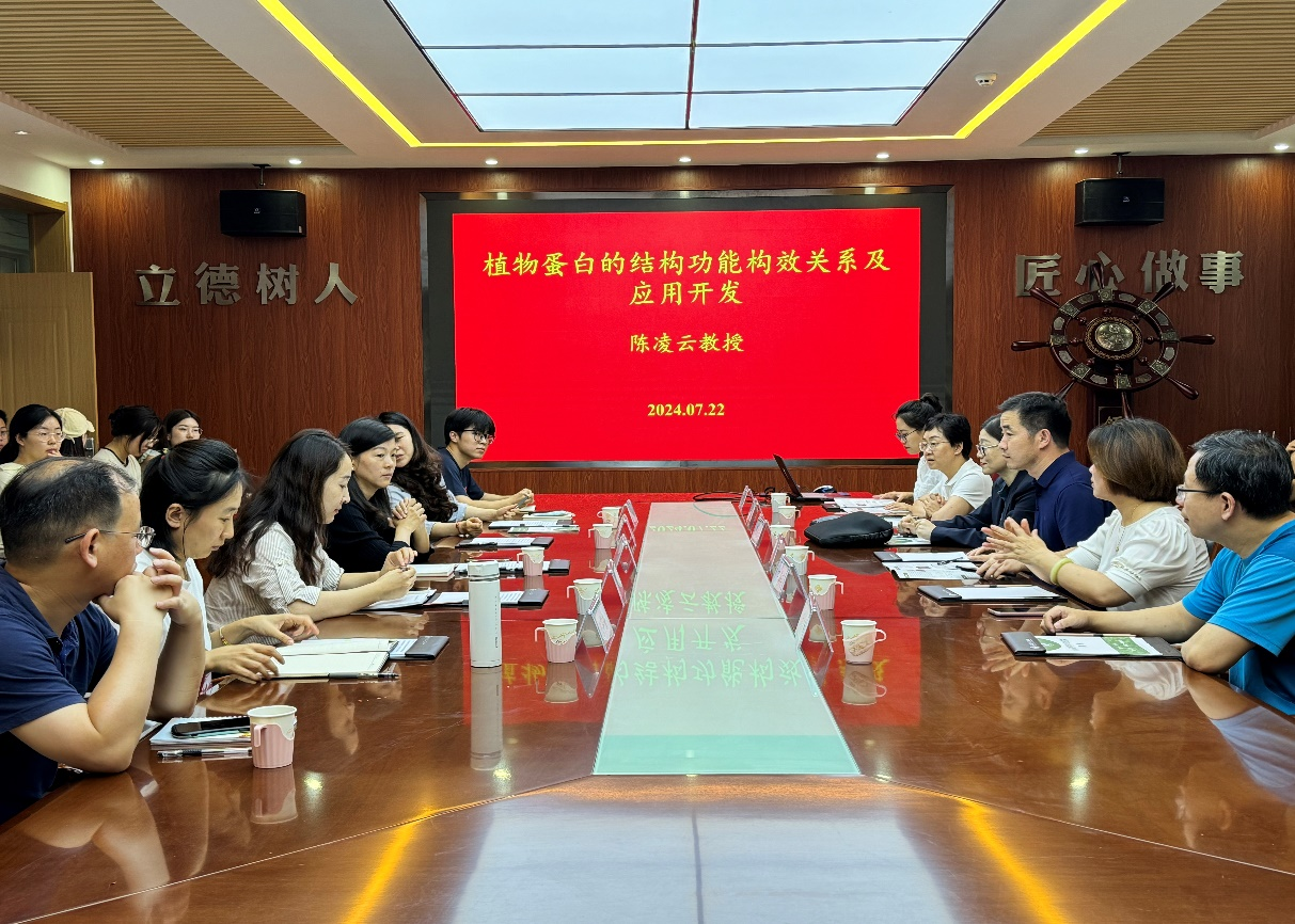 7月22日上午10点,beat365在线体育官网在食品楼310会议室举办“植物蛋白的结构功能构效关系及应用开发”学术讲座交流会,邀请加拿大阿尔伯塔大学教授(加拿大首席科学家)陈凌云教授作报告与交流,并邀请中国海洋大学罗先香教授、郑浩教授、孙翠竹博士后及全院近30位师生参加。