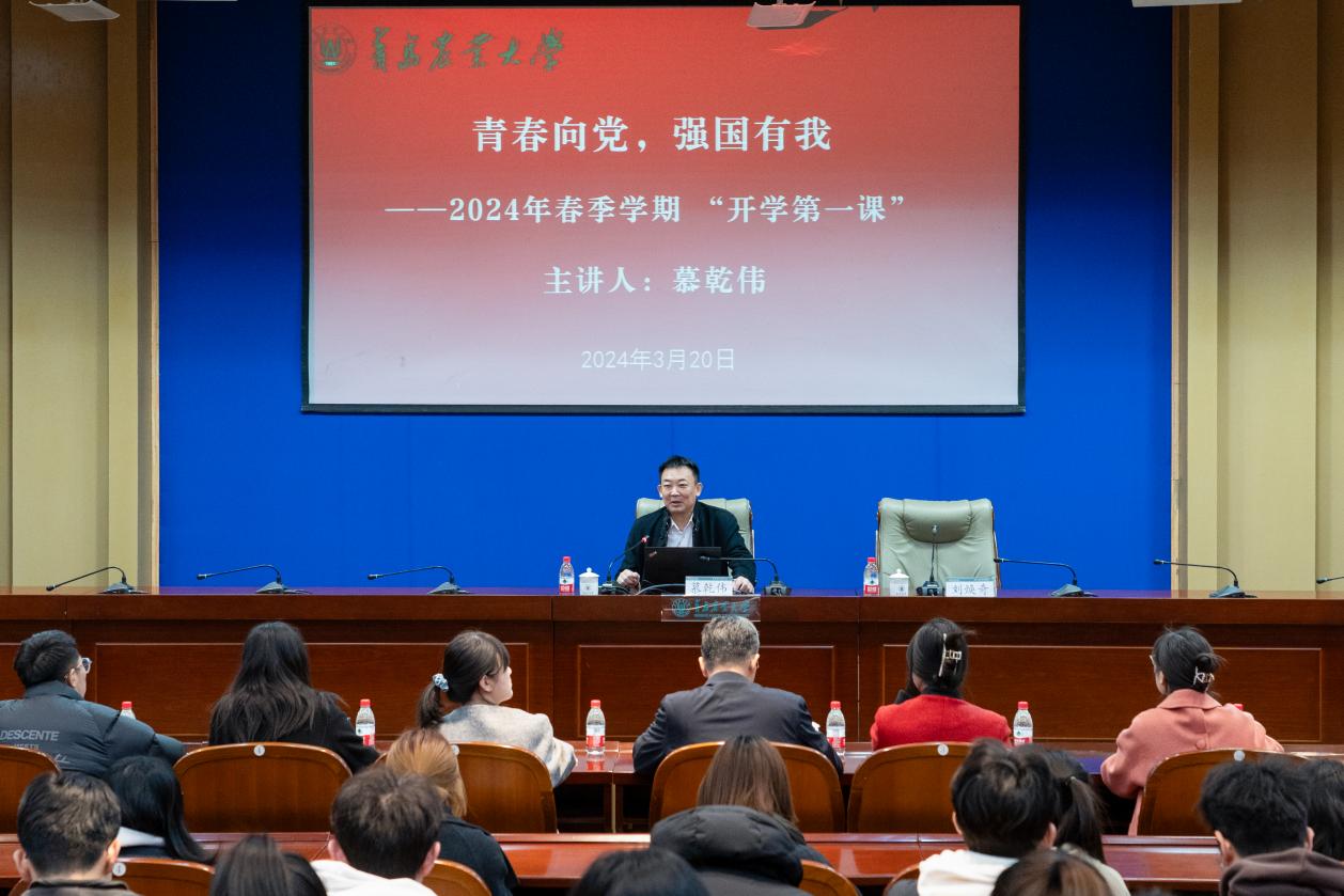 3月20日,青岛农业大学党委委员、宣传部部长、统战部部长慕乾伟以“青春向党,强国有我”为题,在学术会馆第一报告厅为巴瑟斯未来农业科技学院、beat365在线体育官网师生讲授开学第一课。巴瑟斯未来农业科技学院党委书记刘焕奇、beat365在线体育官网党委书记车广杰、两院学工办老师、学生代表参加活动,活动由刘焕奇主持。