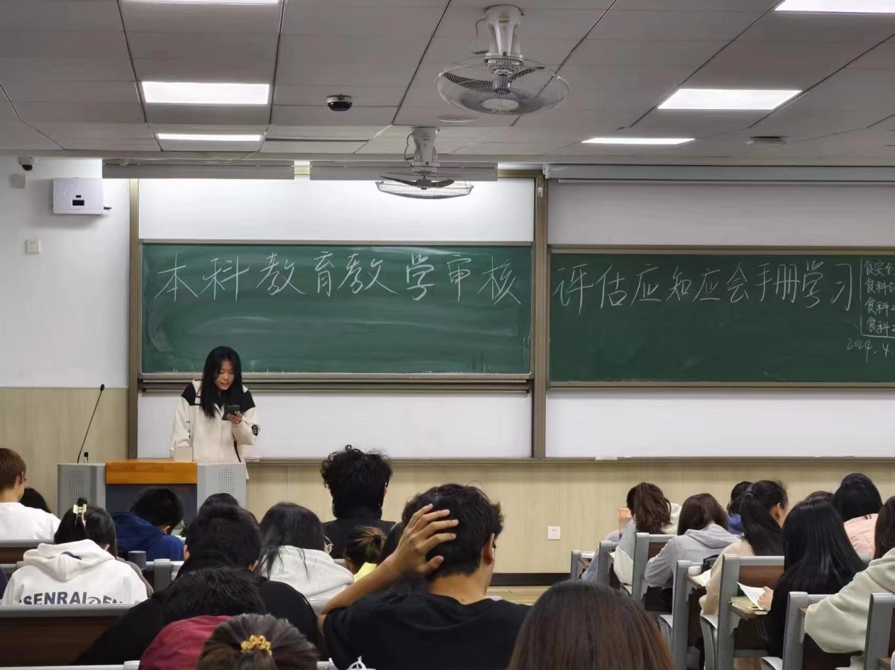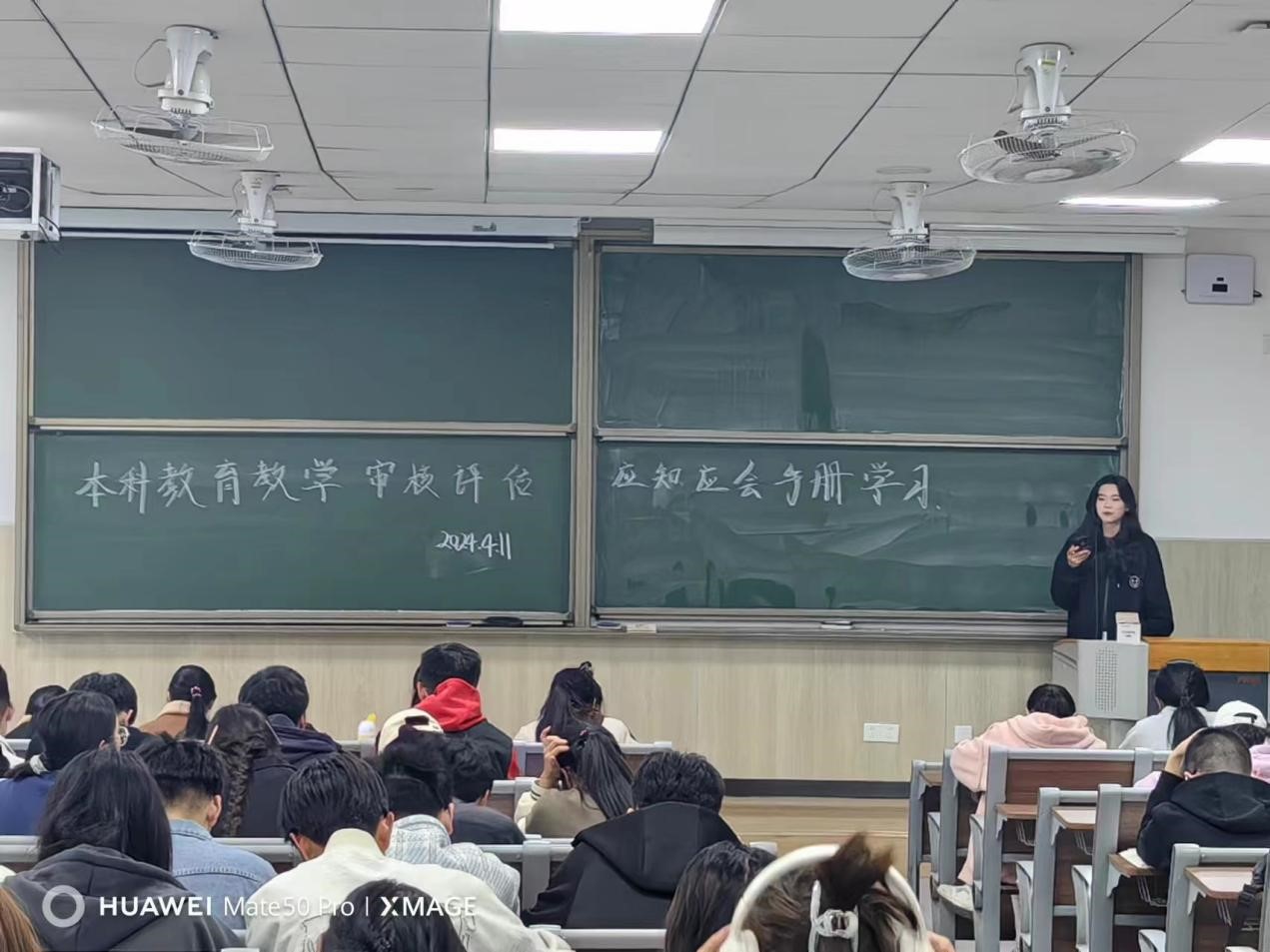 各班班主任领学《新一轮本科教育教学审核评估应知应会手册》,带领学生了解审核评估基本常识、热词解读、学校概况及评建工作等内容,倡导学生积极关心、支持和参与审核评估。