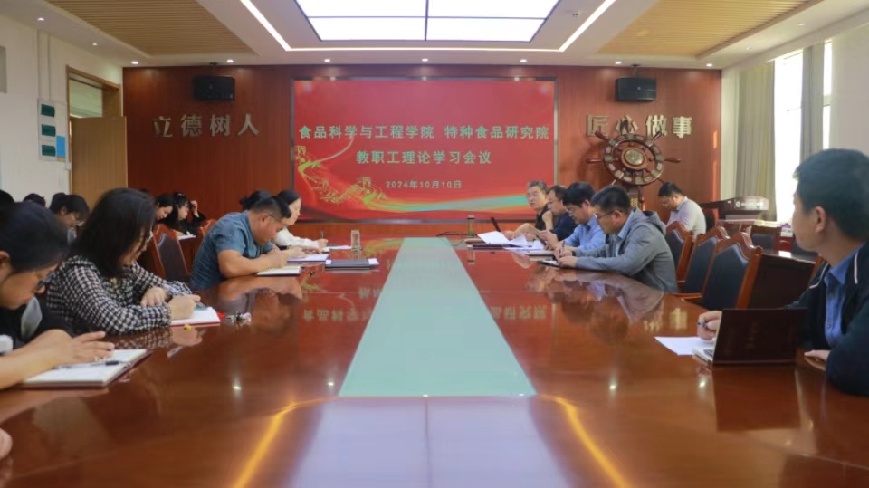 10月10日,beat365在线体育官网、特种食品研究院召开教职工理论学习会议,进一步深入学习全国教育大会精神,安排部署近期重点工作。全体教职工参加会议,会议由学院党委书记车广杰主持。