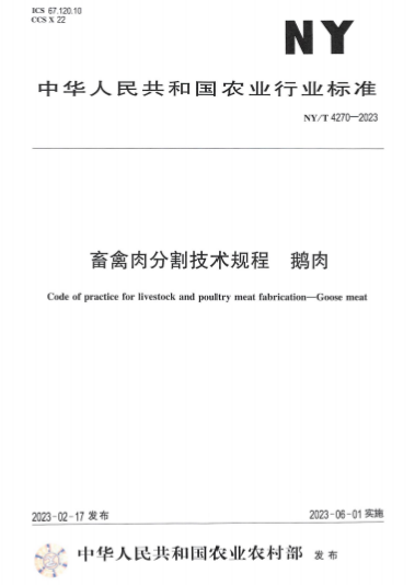 据悉,该标准重点确立了鹅肉分割程序,规定了整鹅分割、部位分割等阶段的操作指示,描述了各阶段操作的追溯方法,同时首次以附录形式详细列出了鹅肉分割的产品名称、产品分割部位示意图和产品示意图,为我国鹅肉分割标准化加工开了先例。该团队此前还主持制定过《畜禽屠宰操作规程 鹅》(NY/T 3742-2020),这些系列标准实现了从活鹅屠宰到分割包装鹅产品产业链的完善,主动适应了方兴未艾的鹅肉预制菜和下游产业需求,推动了鹅加工产业实现提质增效和高质量发展,为乡村振兴做出了积极贡献。
