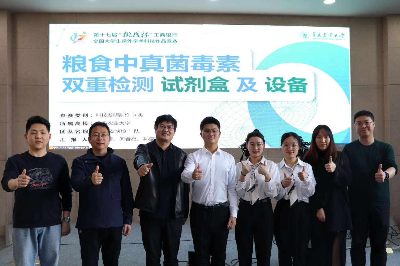 日前,第十七届“挑战杯”大学生课外学术科技作品竞赛和第七届中国国际“互联网+”大学生创新创业大赛赛果公布,beat365在线体育官网吴薇、杨庆利指导的参赛项目《粮食中真菌毒素双重检测试剂盒及设备》斩获“挑战杯”国家级二等奖,吴薇、杨庆利、李永青、侯秀丹指导的参赛项目《粮安快检》斩获创新创业大赛国赛银奖、省赛金奖,实现了学院在大学生双创赛事中的新突破。