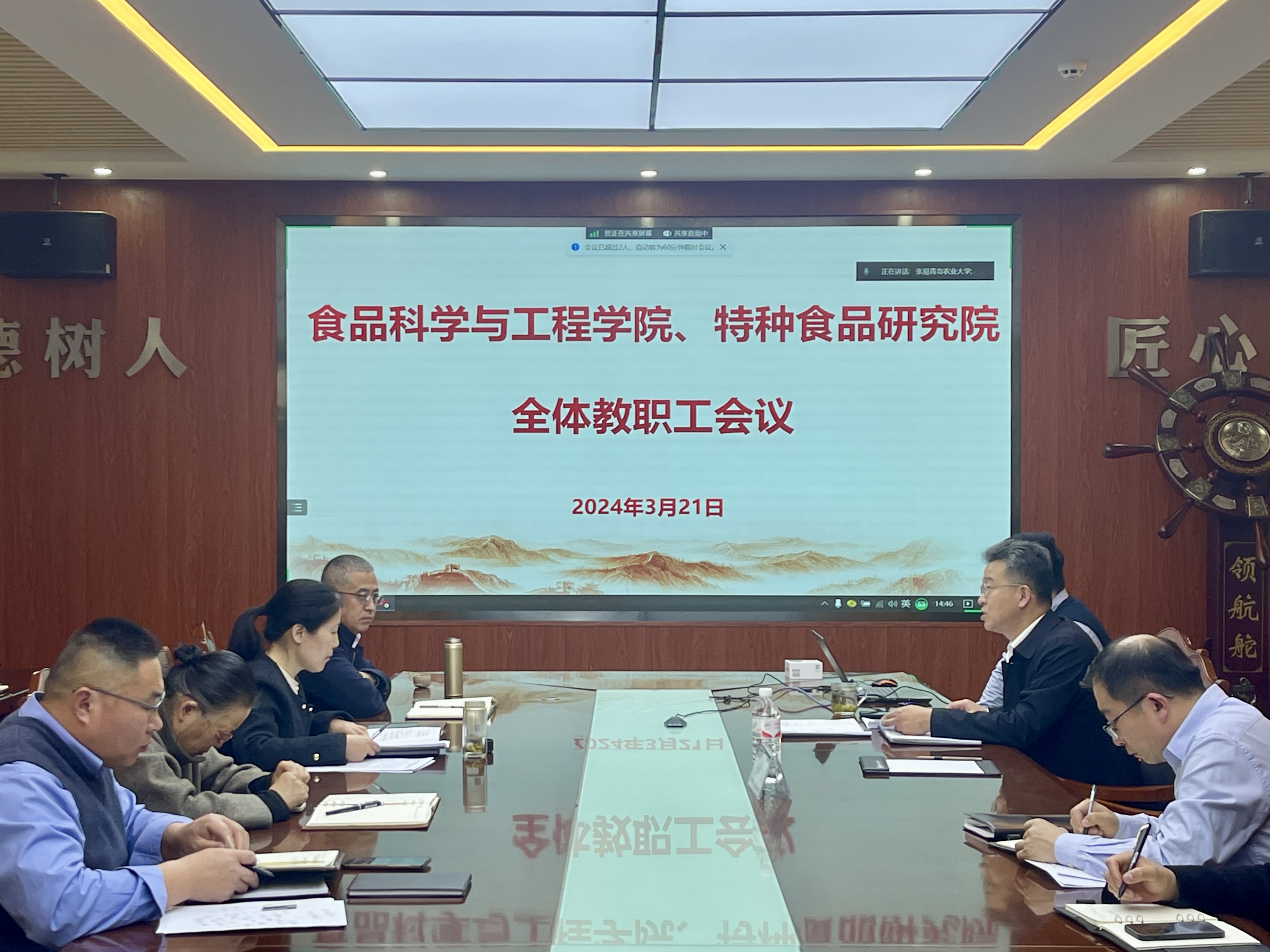 3月21日,beat365在线体育官网、特种食品研究院召开教职工理论学习会议,全体教职工参加会议,会议由学院党委书记车广杰主持。