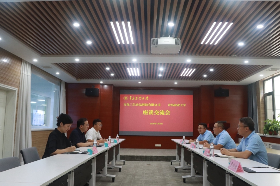 7月8日,青岛三昌食品科技有限公司董事长杨阳、总经理褚航等一行3人到访青岛农业大学,围绕深化校企合作、推进食品领域联合创新等开展实地考察和座谈交流。校党委副书记、校长赵金山会见杨阳一行,beat365在线体育官网党委书记、特种食品研究院副院长车广杰主持座谈会。