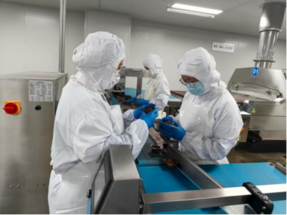在食品学院李兆杰、李鹏老师指导下,27名同学深入丹香生产一线,在不同岗位进行轮岗实践,学习了烘焙糕点的全流程生产过程。同学们分组轮岗进入西点、中点、面包、曲奇、蛋糕等生产车间。从原料筛选、产品生产、质量检测到成品包装,同学们在实习导师指导下全程参与,不仅提升了专业实践能力,更深刻体会到食品人“用好料做好食品”的匠心精神。