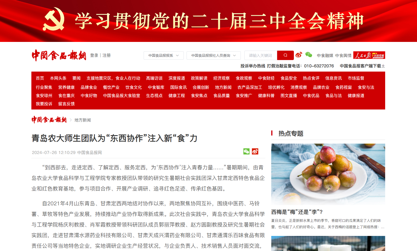 “将团队科研合作与研究生企业实践相结合、革命传统教育与产业调研相结合”,杨庆利表示,发挥人才、科技优势,服务“青岛·定西东西部协作”,为定西产业发展注入新活力,是学院科研团队一直以来的工作导向与目标。引导研究生暑期社会实践走进西部、走进定西,旨在让更多食品青年人才了解定西、关注定西、支持定西,在今后的科研创新和社会服务中,持续以青年食品人的智慧与担当推动东西部协作开辟新领域、取得新成效。