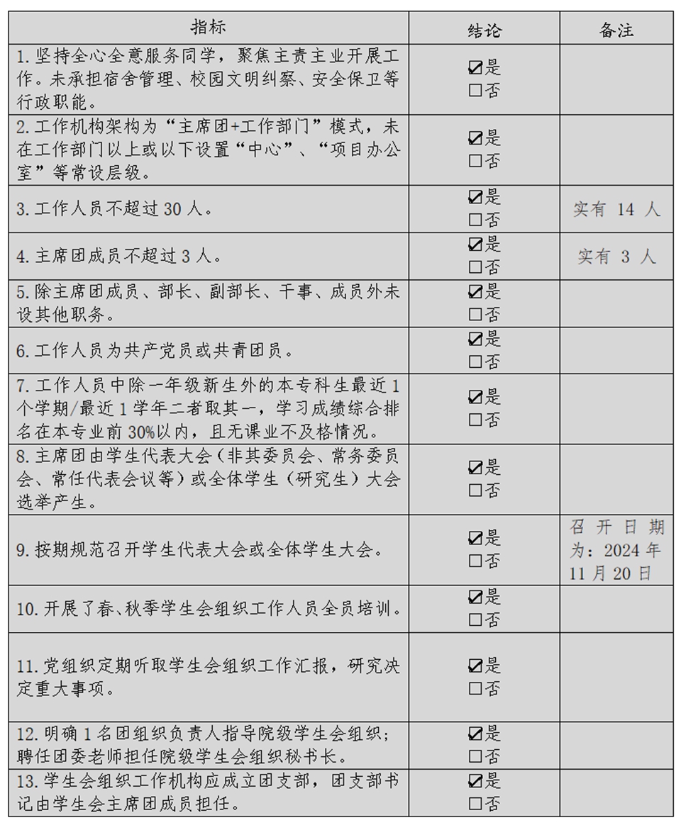 为落实共青团中央、教育部、全国学联联合下发的《关于推动高校学生会(研究生会)深化改革的若干意见》,并结合《关于巩固高校学生会(研究生会)改革成果的若干措施》文件要求,接受广大师生监督,现将我院2024年度学生会改革情况公开如下。