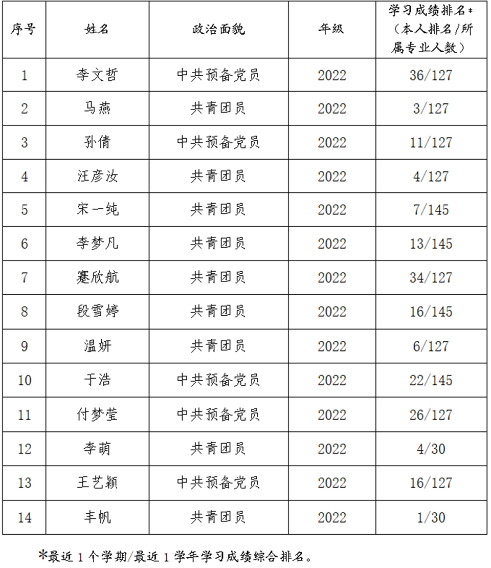 5.具备牢固的专业基础与合理的知识结构,有较强的学术精神和学习能力,学业成绩优秀,综合素质排名和学业成绩排名位于本专业前30%且无不课业不及格情况;