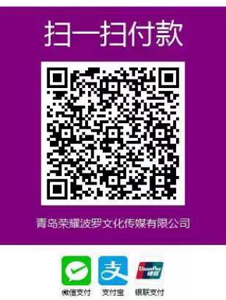 (1)银行转账:青岛荣耀波罗文化传媒有限公司