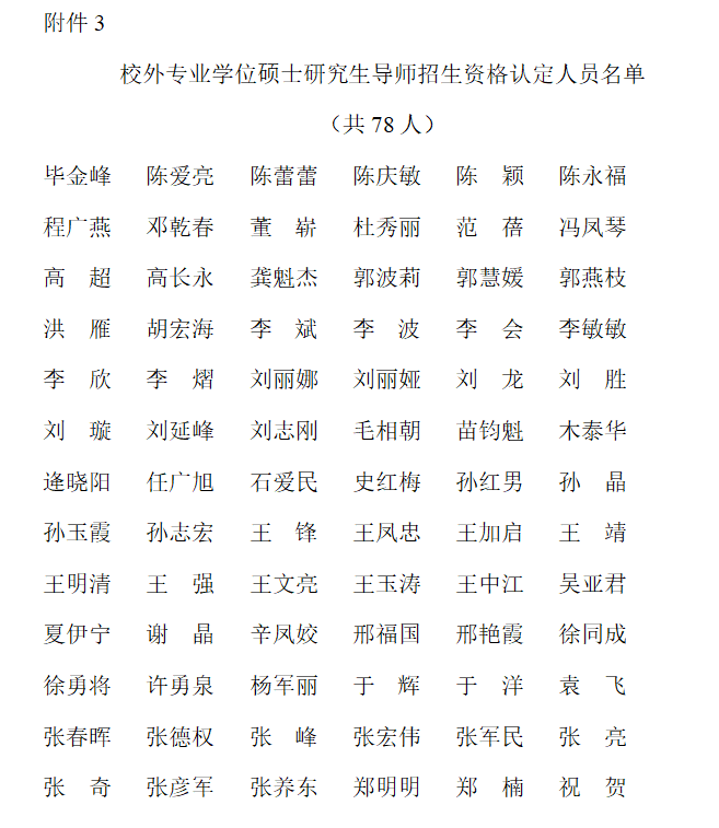 附件3:校外专业学位硕士研究生导师招生资格认定人员名单