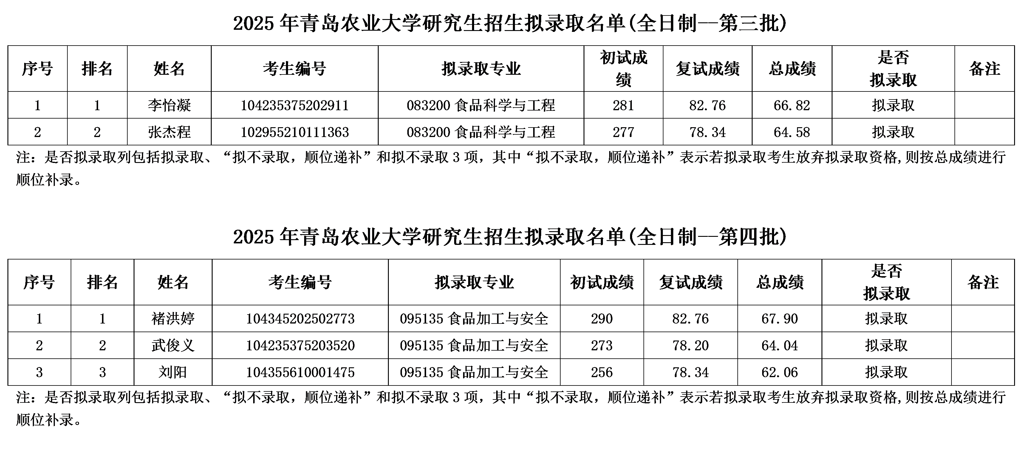 2025年食品学院硕士研究生调剂复试录取名单