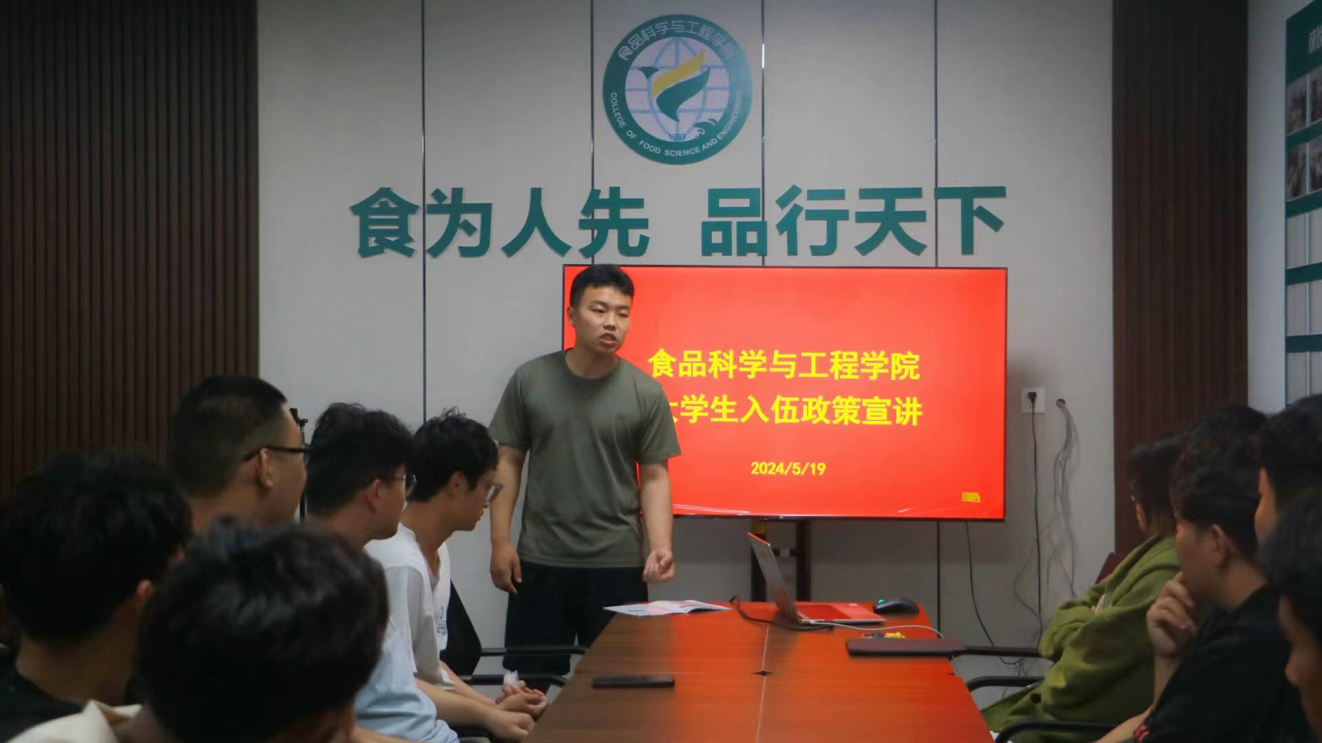 王传锟结合自身军旅生活,从毕业生入伍方式、优待政策、工资待遇、考研就业优势等方面讲解了毕业生参军的相关政策,并就征兵对象、征兵条件、报名时间与流程作了说明,鼓励大家抓住机遇,奉献自己的青春和力量。