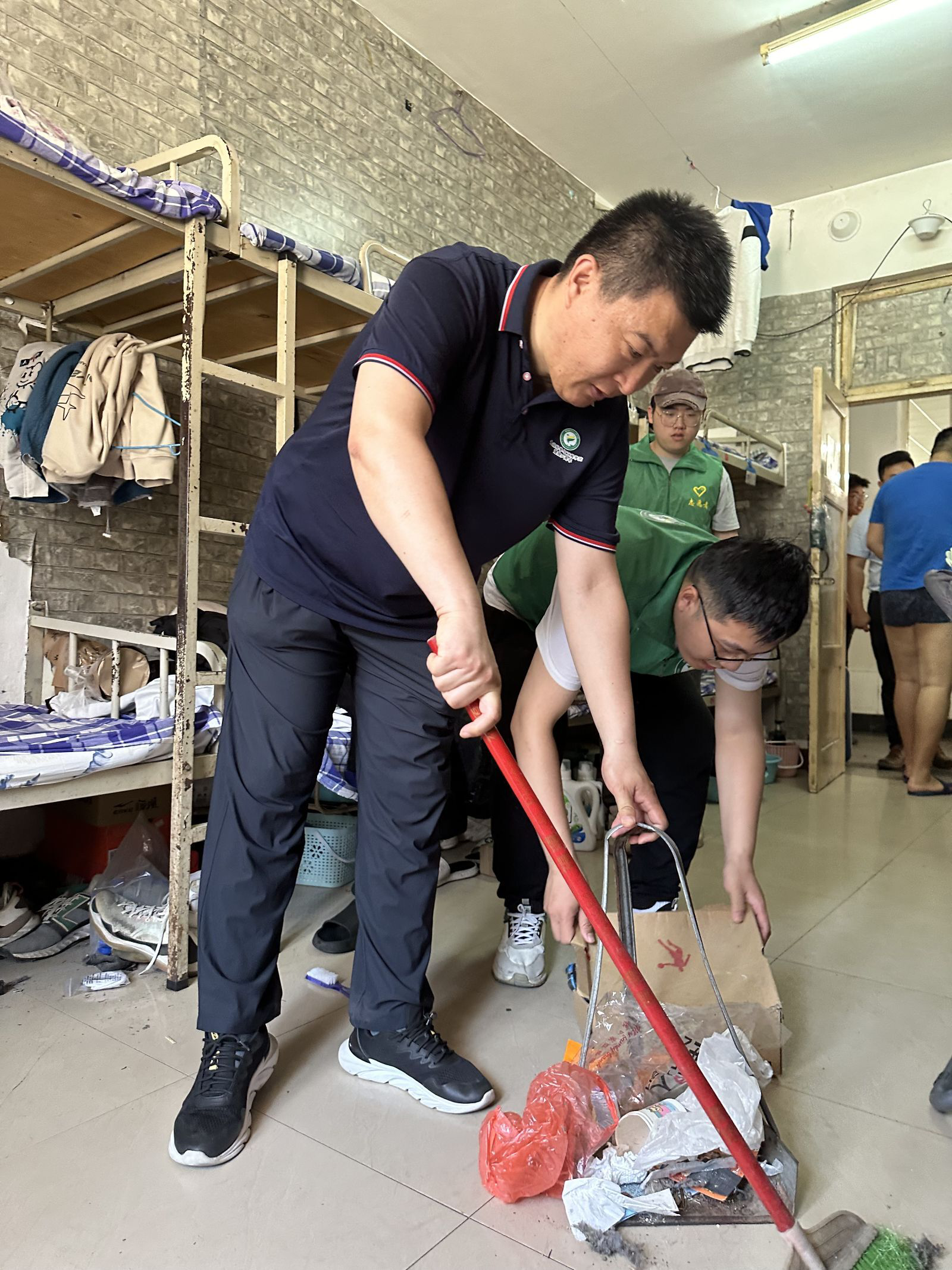 6月17日,beat365在线体育官网党委组织党员开展“我爱我家”毕业生宿舍清扫主题党日活动,学院党委书记车广杰带领班子成员、党支部书记和学生党员志愿者走进毕业生宿舍,与广大毕业生一起,用特别的方式与母校告别,以高度的责任感和主人翁意识,为母校留下一份整洁与美好。