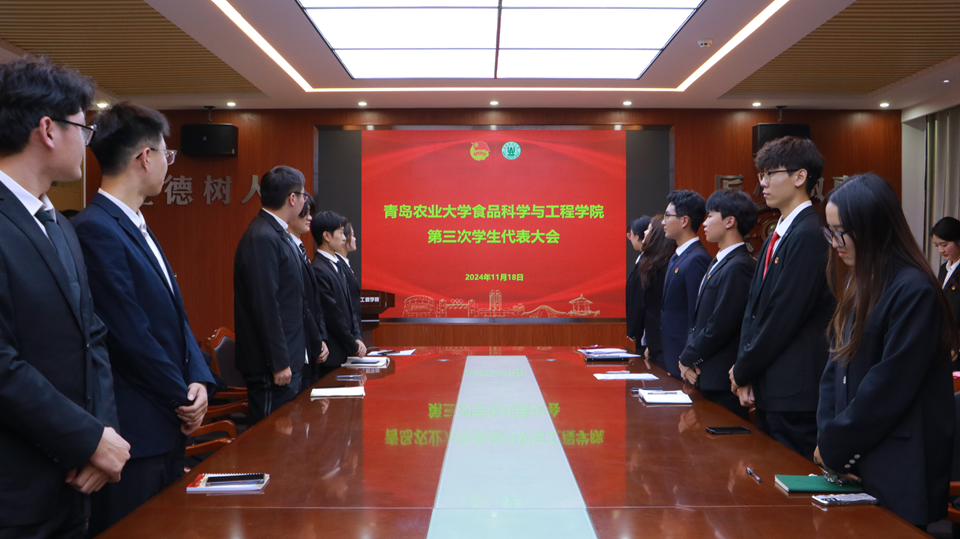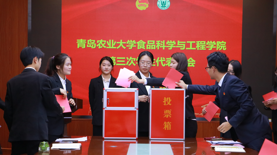 11月18日,beat365在线体育官网第三次学生代表大会在食品楼310会议室召开。大会选举产生了新一届学生代表大会常任代表、第三届学生会主席团以及出席青岛农业大学第七次学生代表大会代表,78名学生代表参加大会。