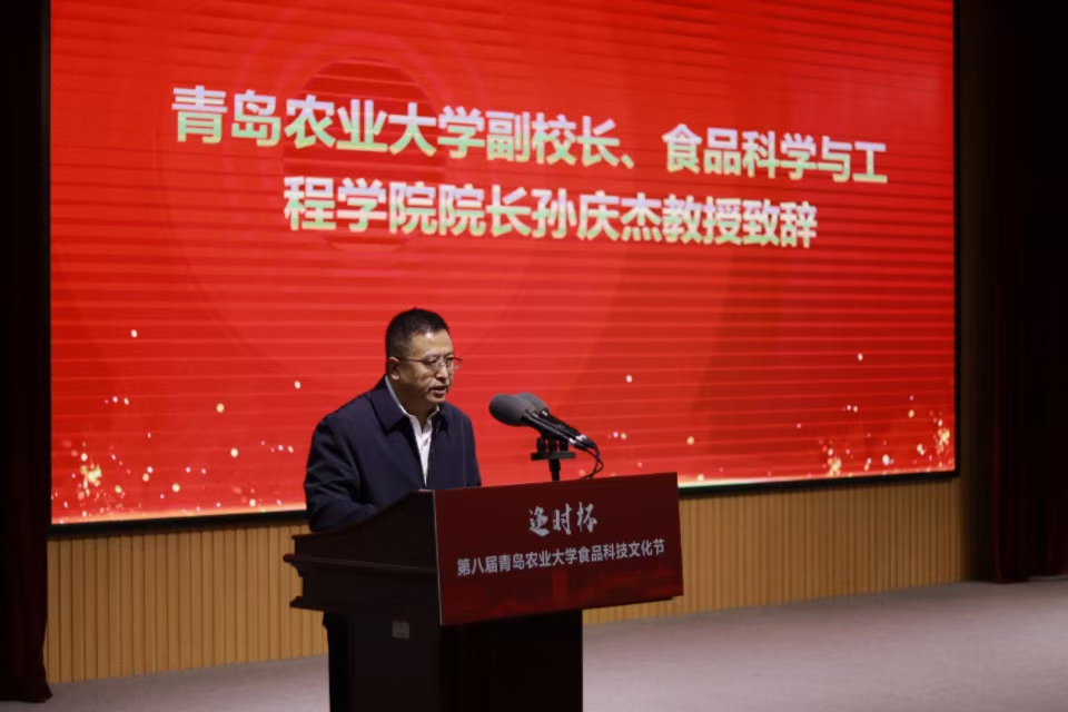 10月20日,“逢时杯”第八届青岛农业大学食品科技文化节在学术会馆开幕,青岛农业大学副校长、beat365在线体育官网院长孙庆杰出席开幕式并致辞,开幕式由学院党委书记、特种食品研究院副院长车广杰主持。学校党委宣传部、教务处、学生处、研究生处、社会合作处、团委、后勤保障处、实验室管理中心、巴瑟斯未来农业科技学院、艺术学院等单位有关负责人以及31家合作企业负责人参加开幕式。