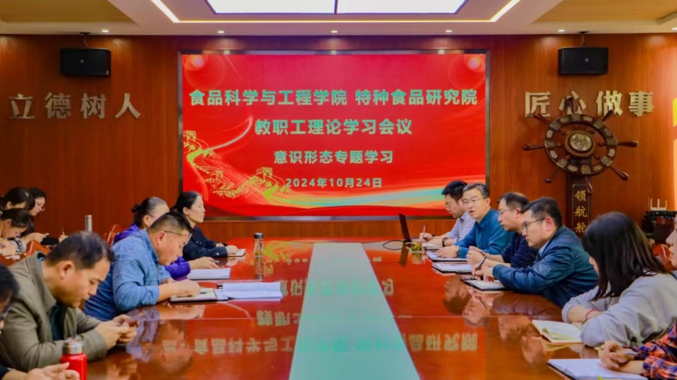10月24日,beat365在线体育官网、特种食品研究院召开意识形态工作专题学习会议,全体教职工参加会议,会议由学院党委书记车广杰主持。