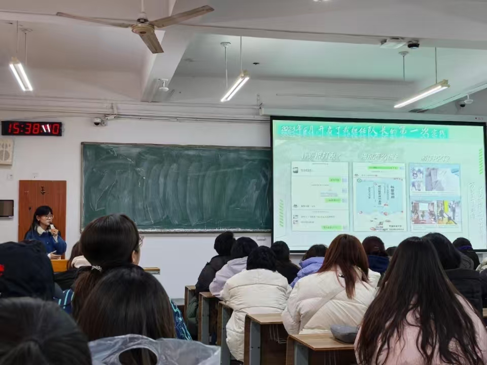 社会实践部22级王艳硕,分享了参与社会实践的经历,列举了参与实践活动中遇到的困难与挑战、克服困难的方法与过程以及最后取得的一些成果与个人收获,从前期准备工作、海报制作、PPT制作三个方面向新生们分享了社会实践所需技能的培养,从物资准备、成员分工、规划日程、联络对接和总结文字五个方面开展社会实践工作。最后和全体参加宣讲同学分享了“各大微信公众号、三下乡官方网址、到梦空间”三个获取实践资讯的渠道。