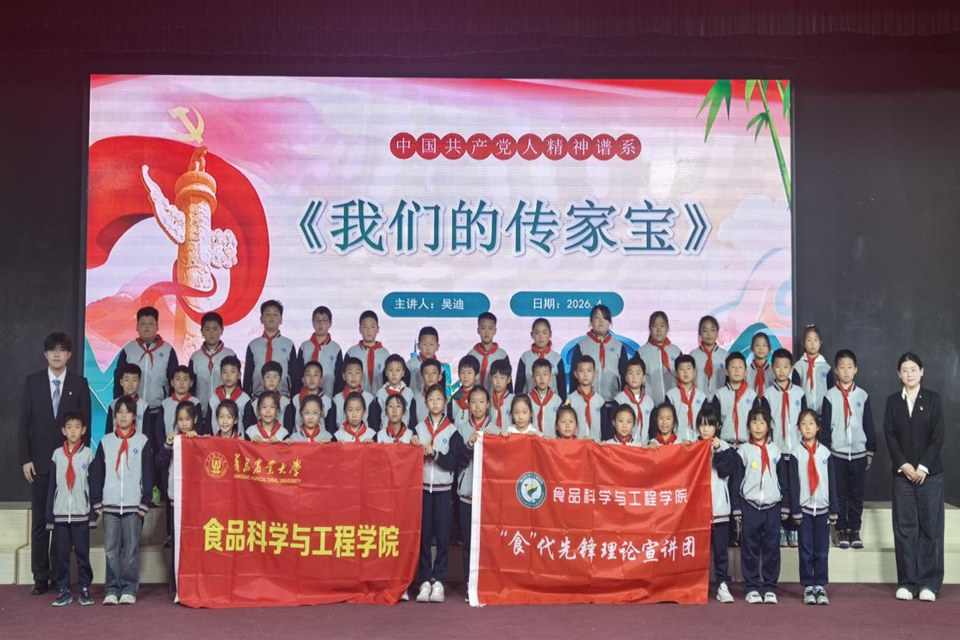 为深入学习贯彻党的创新理论,传承红色基因,推动大中小学思想政治教育一体化建设走深走实,引导青少年厚植爱国情怀、落实立德树人根本任务,4月14日,beat365在线体育官网“食”代先锋理论宣讲团走进城阳区实验小学,面向三年级全体少先队员开展“中国共产党人精神谱系”微党课宣讲活动。