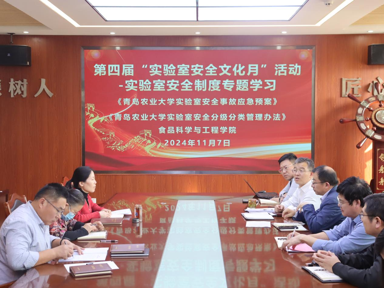 会议传达学习了《青岛农业大学实验室安全事故应急预案》(青农大校字[2024]80号)《青岛农业大学实验室安全分级分类管理办法》(青农大校字[2024]78号)。车广杰充分肯定了11月6日举行的实验室油锅起火事故应急演练活动取得的成效,并要求各实验室要分期分批开展消防演练活动,确保突发情况下的迅速合理处置。