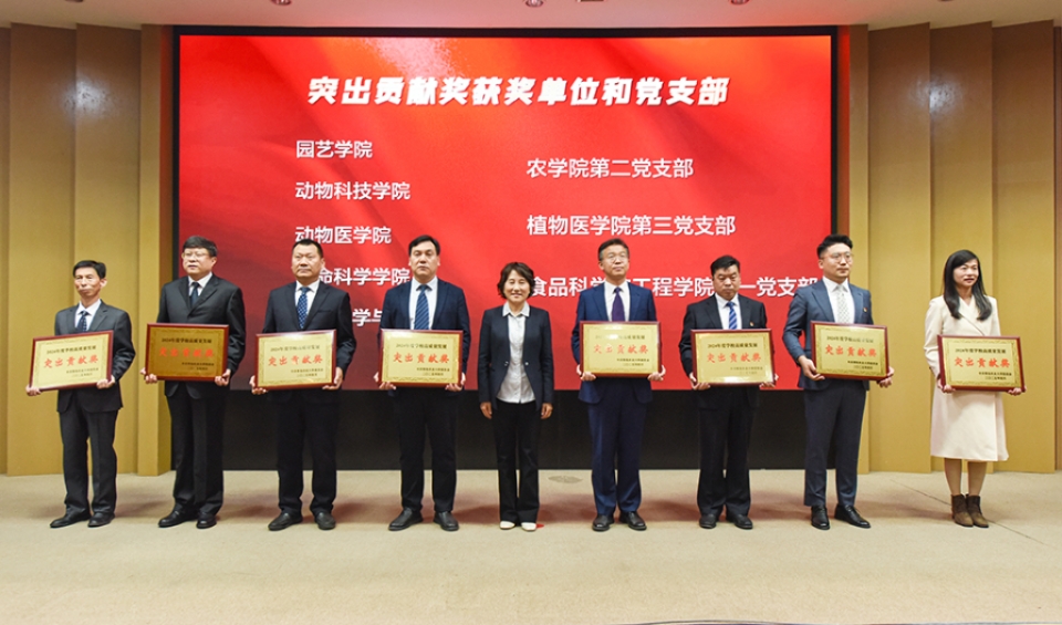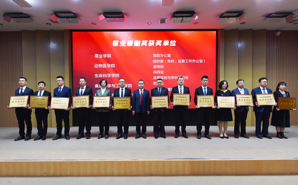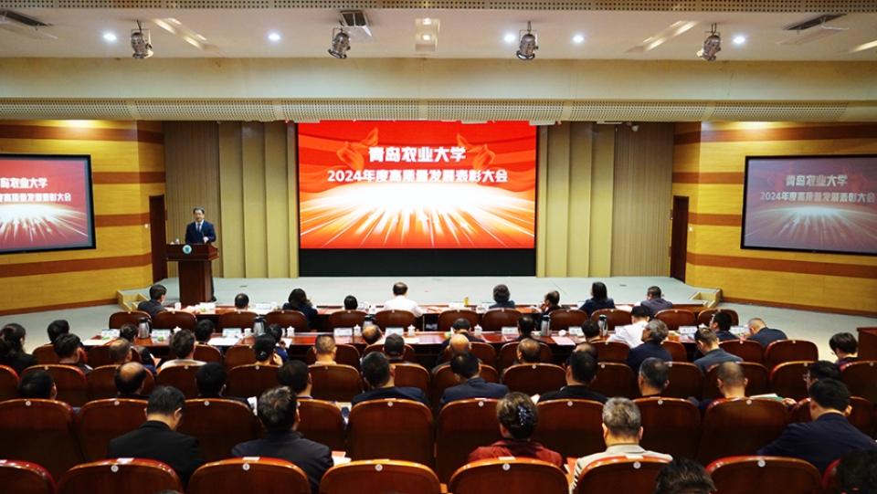 4月30日上午,青岛农业大学举行高质量发展表彰大会,全体校领导出席会议,全体校领导分别为卓越贡献奖、突出贡献奖、改革创新奖、攻坚克难奖和敬业奉献奖的获奖集体和个人颁奖,食品学院获得4项集体、个人奖项。