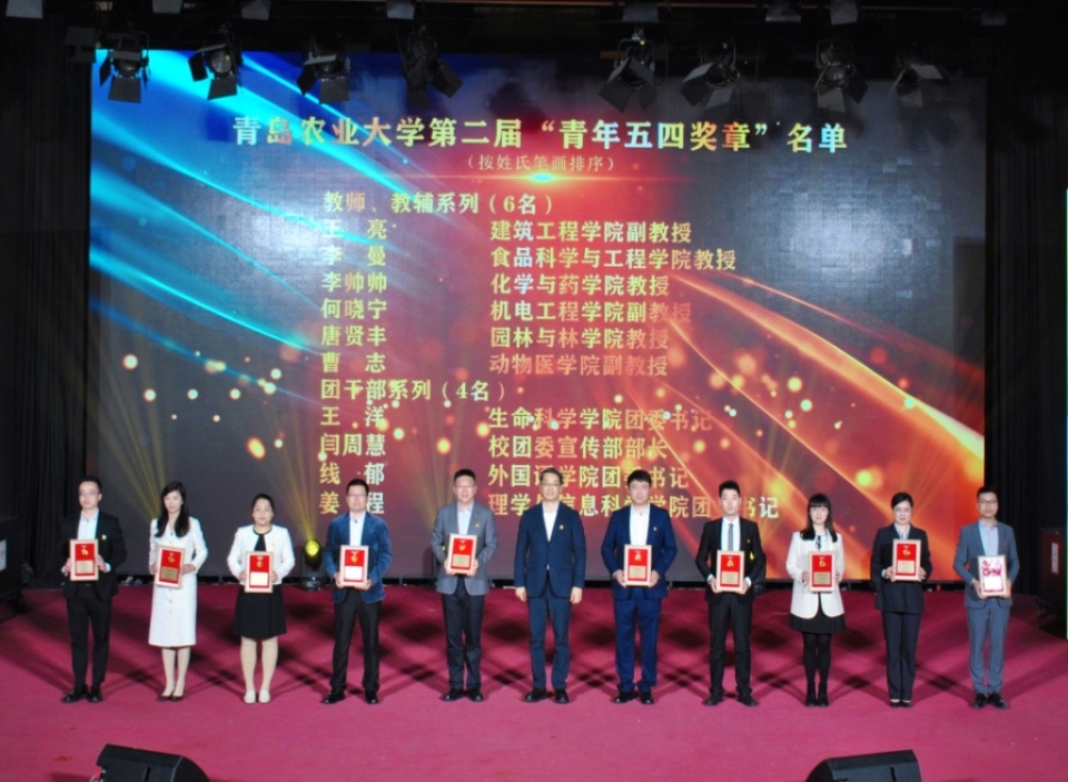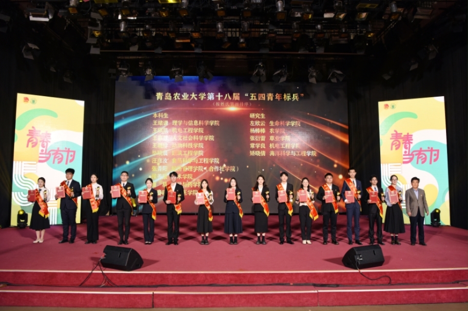 此外,在4月29日上午举行的青岛农业大学2025年五四青年节特别团课暨表彰大会上,食品学院李曼教授、2022级食品质量与安全专业汪彦汝分别被授予青岛农业大学第二届“五四青年奖章”、青岛农业大学第十八届“五四青年标兵”称号,校党委书记潘军、校党委副书记田义轲分别为她们颁奖。