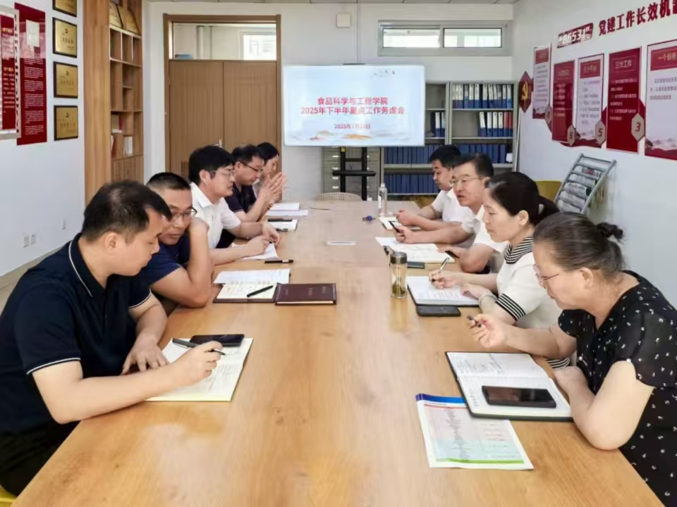 会议着重就博士点申报、特种食品大会等学院2025年下半年需重点推进和完成的工作进行了深入分析和研讨。