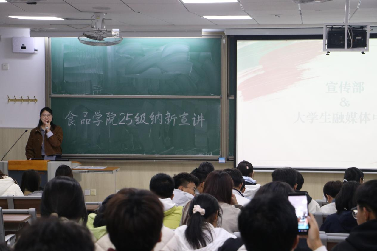 宣讲环节中,学生会及大学生发展中心各部门(中心)负责人依次登台,以生动详实的方式展示部门风采,详细介绍了个人在部门的工作感悟与成长收获,并说明了各部门的招新要求与能力培养方向,让新生们对学生会各部门职能与工作内容有了清晰认知。