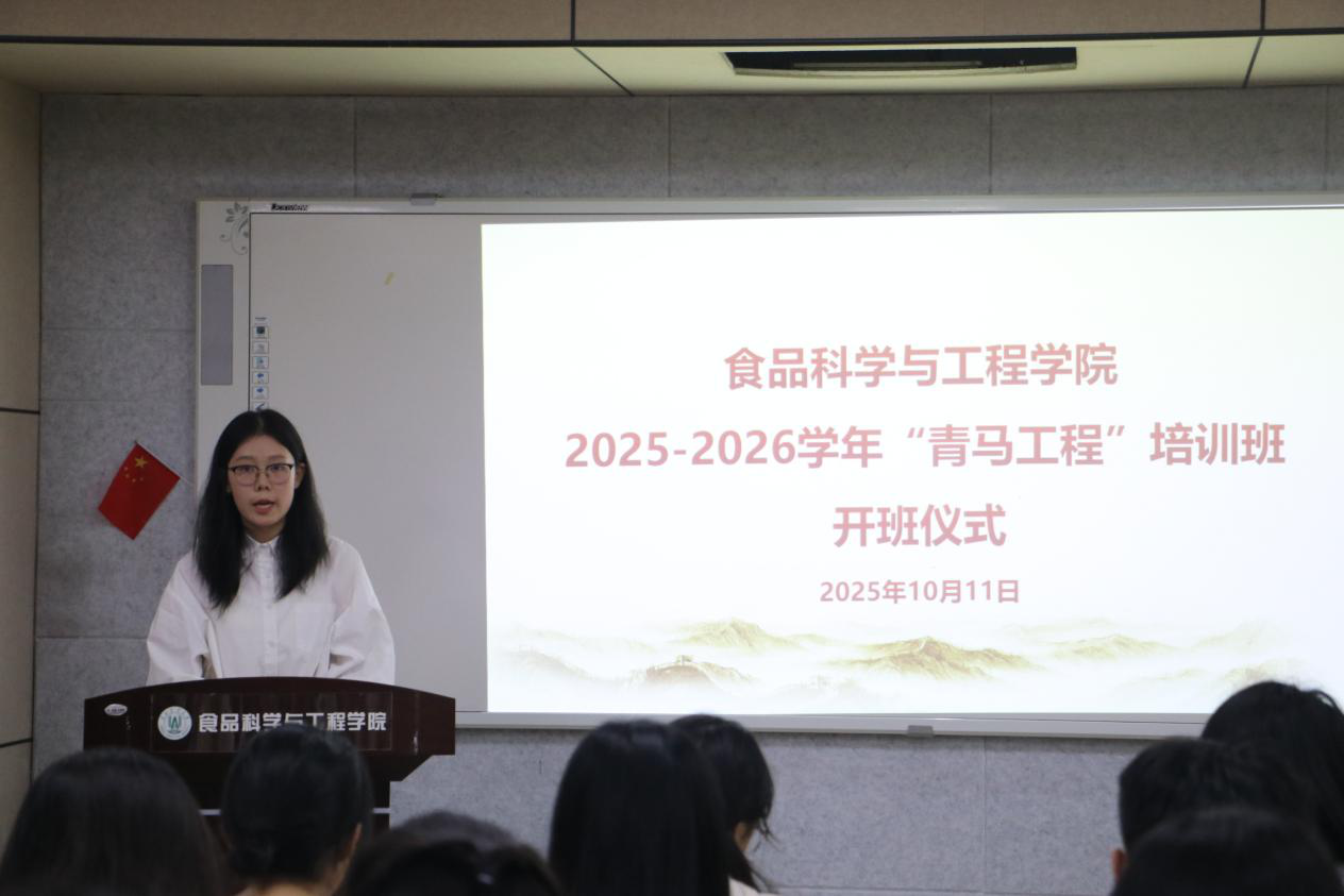 车广杰在报告中阐释了“青马工程”在青年成长中的重要作用和意义,向全体学员提出三点期望:一要争做有理想、有追求的青年,厚植马克思主义信仰,胸怀“强农兴农”使命,自觉将个人理想追求融入国家发展和食品事业进步中;二要争做有担当、有作为的青年,准确把握食品行业发展趋势,勇于投身科技创新与创业实践,为推动食品产业高质量发展贡献青春力量;三要争做有品质、有修养的青年,在刻苦钻研专业知识的同时,注重锤炼高尚品德,努力成长为德智体美劳全面发展的社会主义建设者和接班人。他勉励大家珍惜学习机会,全面提升思想政治素质和综合能力,积极发挥先锋模范作用,努力书写新时代食品人的责任与担当。