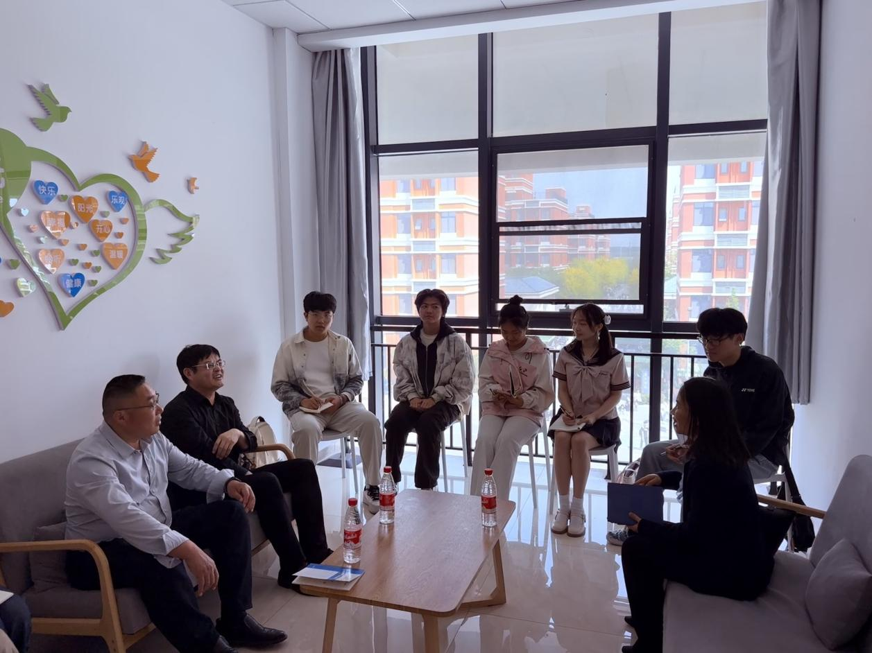 杨庆利关切地询问各位同学进入大学之后在生活、人际交往以及娱乐放松等方面的现状与变化,了解同学们对于大学的认识以及大学期间学业发展的规划。“要用长远的目光去规划自己的大学时光,大家最后都是要走到工作岗位上的,要根据自己的就业方向、自我认识以及目标岗位需要的知识储备,决定自己大学期间的努力方向……”杨庆利结合工作经历以及作为班主任的带班经验,引导同学们思考自己在大学期间的方向与选择,传授学术素养提高、自我能力评估、就业方向选择、考研择校以及备考方法等方面相关经验。