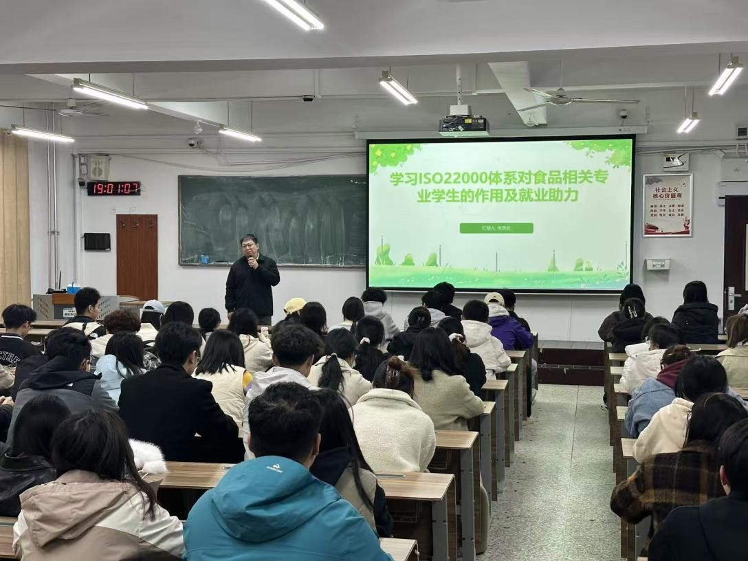 为帮助学生进一步了解当前就业形势,明确市场需求,提升求职就业能力,10月22日,学院邀请了国培互联技术培训中心的关京武老师做《学习ISO22000体系对食品相关专业学生的作用及就业助力》专题报告,22至24级学生积极参加。